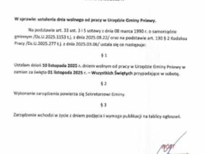 • 03.10.2025 Zarządzenie Nr 78.2025 Wójta Gminy Pniewy z dnia 03.10.2025 r....