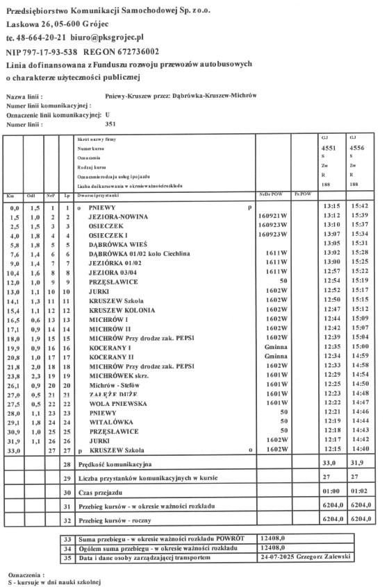 Linia 351 Pniewy-Kruszew przez Dąbrówka-Kruszew-Michrów
