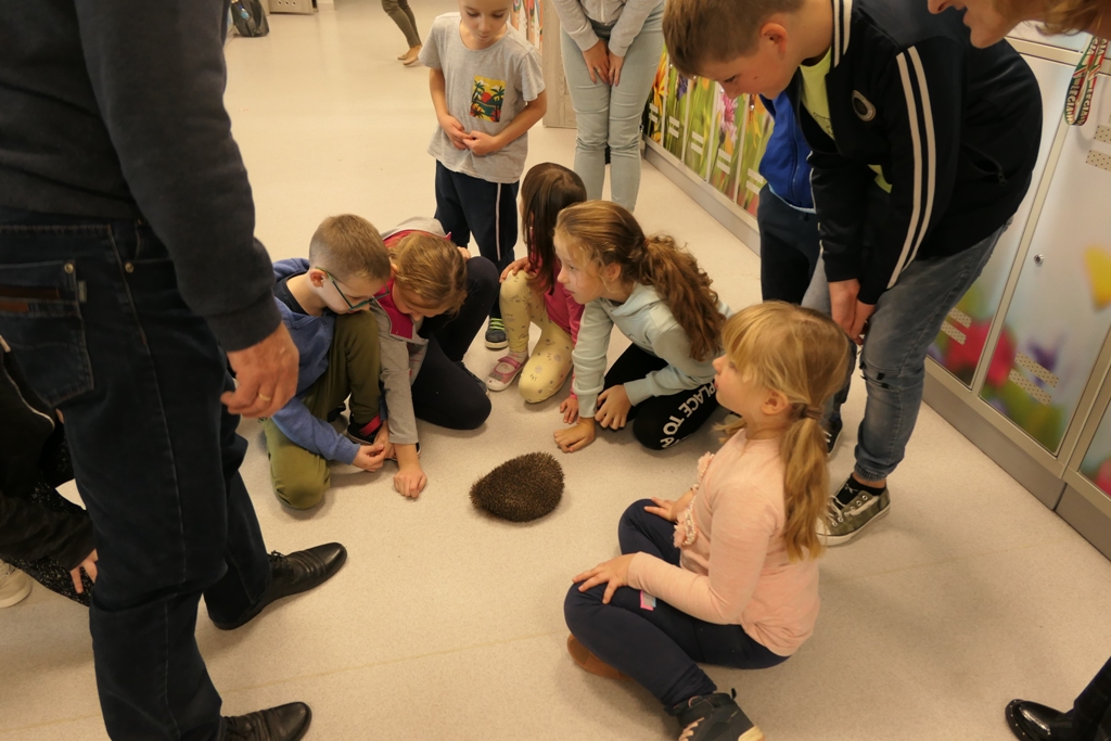 Największą niespodzianką była jednak wizyta niesamowitego gościa. Na korytarz szkolny przywędrował mieszkający przy szkole jeż. Widok tego przesympatycznego zwierzątka sprawił ogromną radość wszystkim, którzy mieli szczęście go zobaczyć. Po krótkiej chwili pan Mirosław Salamon delikatnie owinął jeża ręcznikiem i wyniósł na zewnątrz szkoły. Jeż zadowolony podreptał do swojej kryjówki.