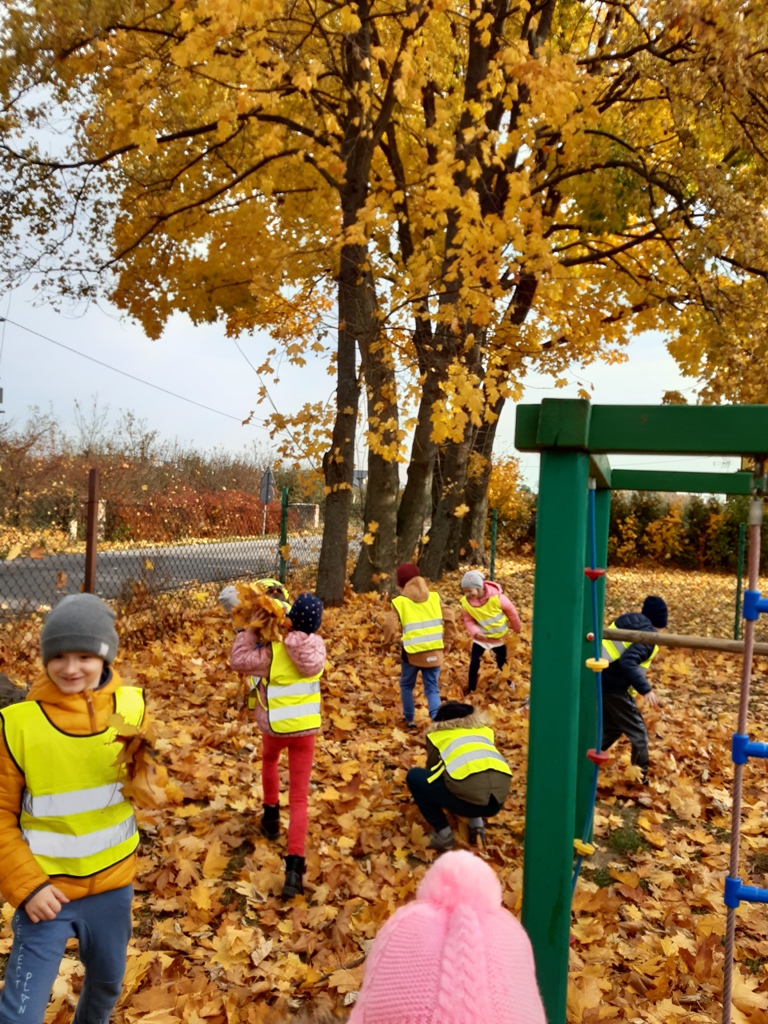 Wpisując się w to święto wiele lekcji w szkole poświęcone zostało właśnie tematyce jesiennej. Klasa III pod czujnym okiem pani Moniki Łętowskiej, układała kompozycje z liści znalezionych dookoła budynku szkolnego. Dzieci z oddziału przedszkolnego II, wykorzystując fachową pomoc starszych koleżanek z klasy VII wyklejały piękne wiewiórki zbierające orzechy. Dyrygowały wszystkim panie: Henryka Opałka Katarzyna Byliniak.