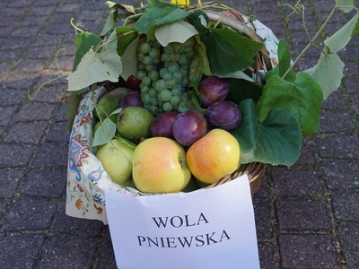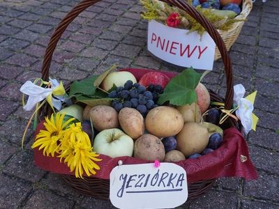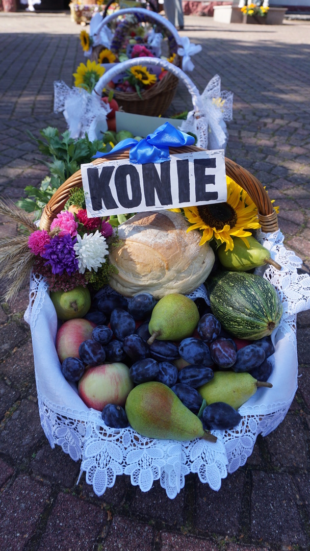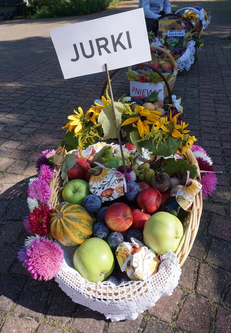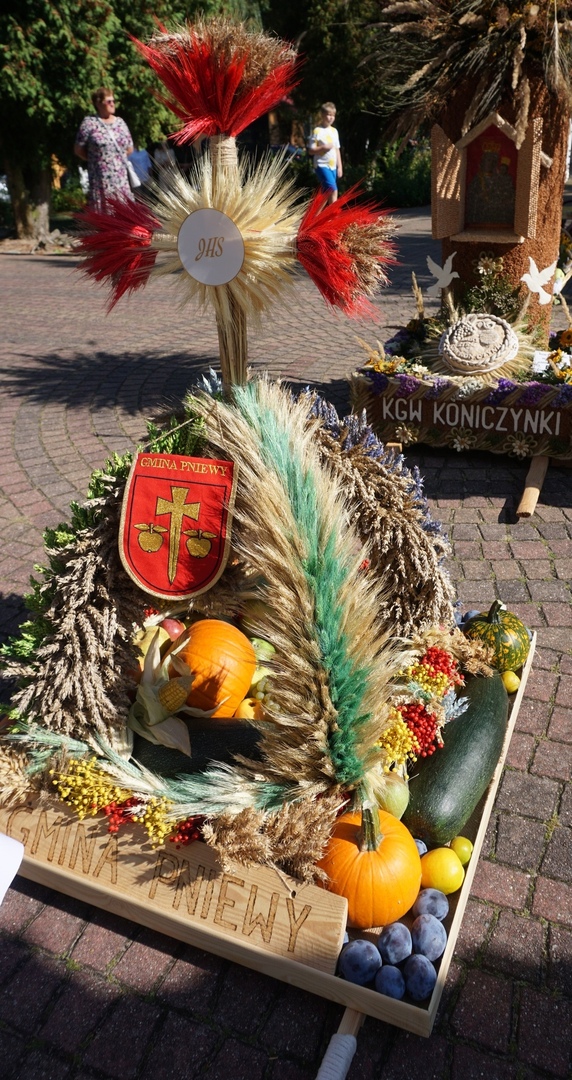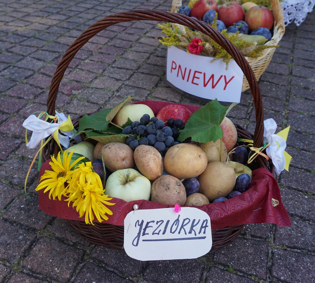 Kosze dożynkowe zawierające owoce, warzywa, przetwory, orzechy i kwiaty przygotowali mieszkańcy poszczególnych miejscowości parafii w Jeziórce. Koło Gospodyń Wiejskich Koniczynki z Konia zaprezentowały także swój wieniec dożynkowy, który przygotowały na dożynki powiatowe. Pracownicy Urzędu Gminy Pniewy  na czele z Wójtem Gminy Pniewy przygotowali wieniec dożynkowy i kosz z przetworami.