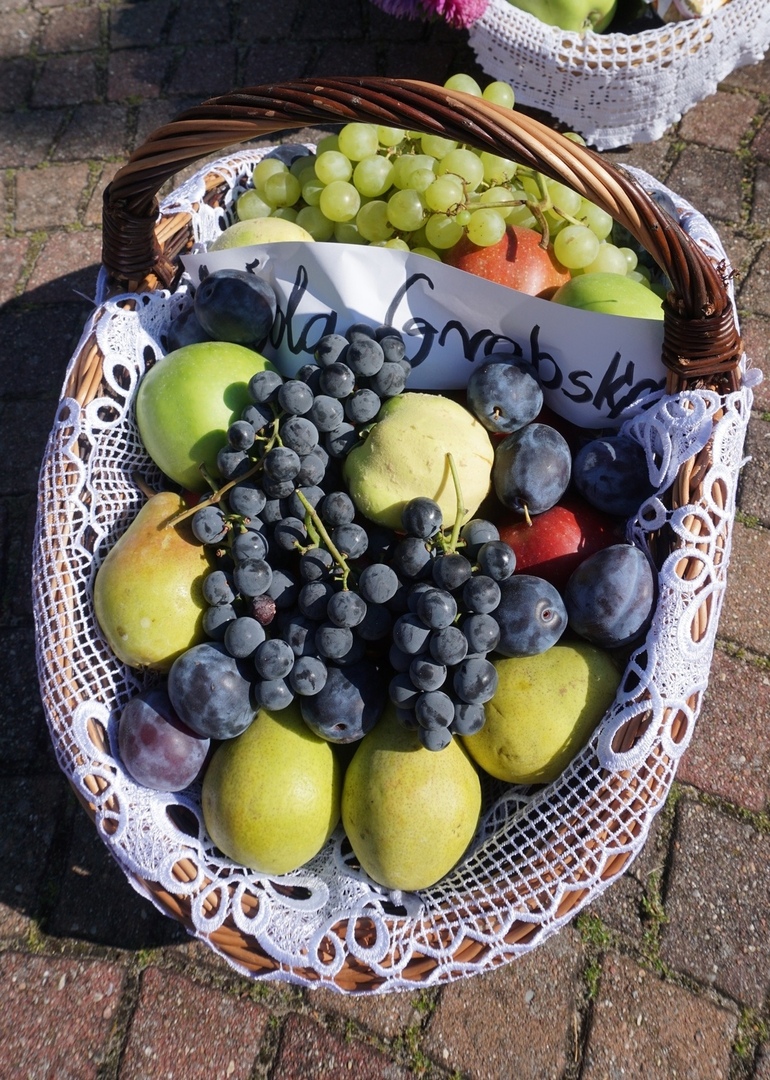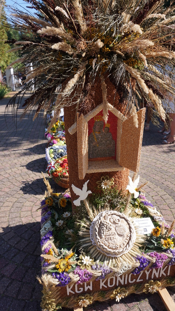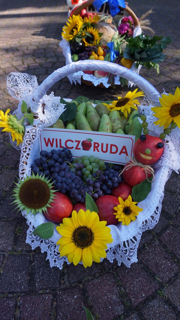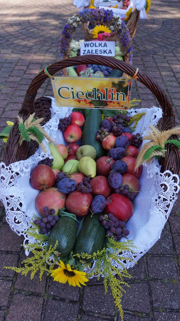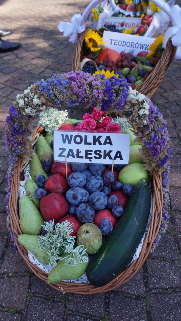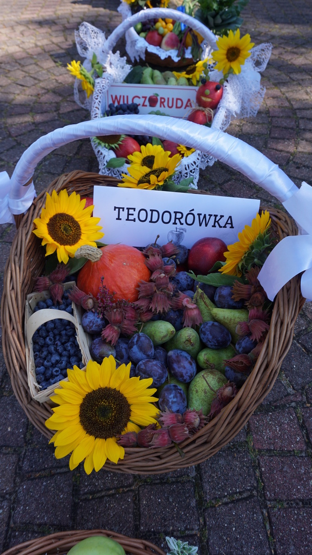 Kosze dożynkowe zawierające owoce, warzywa, przetwory, orzechy i kwiaty przygotowali mieszkańcy poszczególnych miejscowości parafii w Jeziórce. Koło Gospodyń Wiejskich Koniczynki z Konia zaprezentowały także swój wieniec dożynkowy, który przygotowały na dożynki powiatowe. Pracownicy Urzędu Gminy Pniewy  na czele z Wójtem Gminy Pniewy przygotowali wieniec dożynkowy i kosz z przetworami.